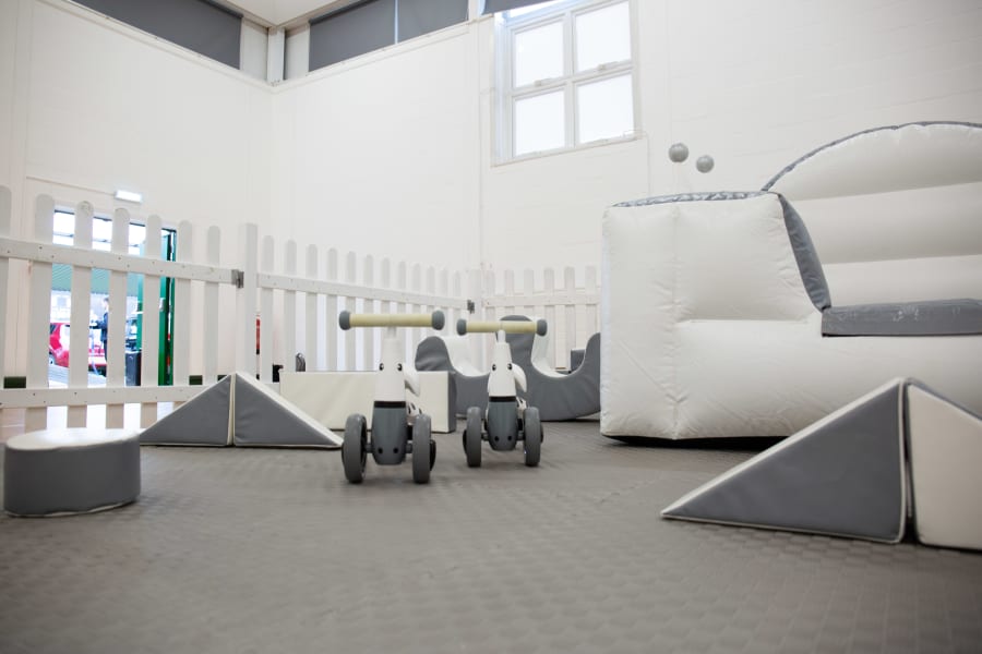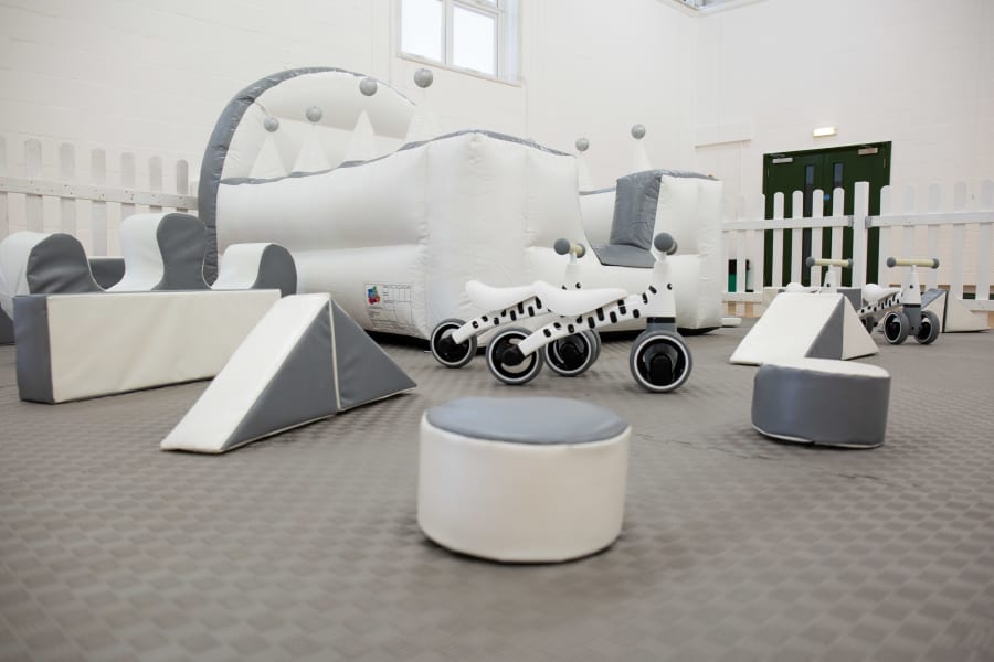 Introducing our Luxury White & Silver Soft Play package, perfect for young children to have hours of fun and excitement! This deluxe set includes 18 pieces of soft play, a foam rocker, a step & slide, large grey foam mats. Paired with our 4 white Didi Trikes and white picket fencing really extends the look of this package giving it complete luxury feel!