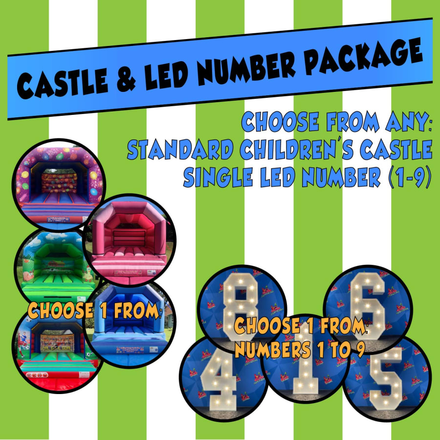 Bring the Fun & Sparkle to your Celebration our Bouncy Castle & LED Number Package