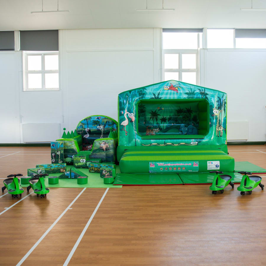 This package contains our Jungle Air Juggler Ball Pool, Jungle Basic Piece Soft Play Set on foams mats, Jungle Box Castle and 4 Didi Cars. It is ideal for your little monkey as they can drive deep into the jungle on the didi cars and find all of the soft play animals on the way, then bounce high into the treetops and swing into the soft play balls.