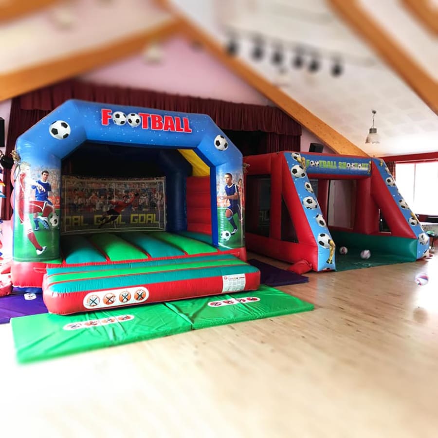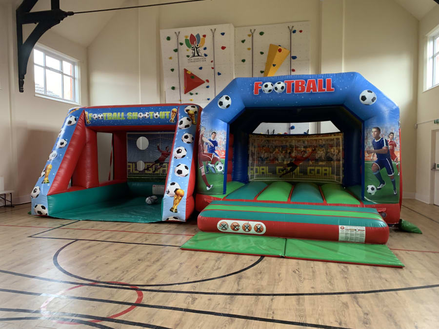The Football Bouncy Castle and Shootout are a great fun combination at parties and can also be used as a really fantastic fund-raiser for school fairs, fetes and charity events.