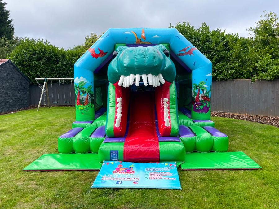 Roarrr! Our Dino Bounce and Slide is a new style of bouncy castle! This fantastic 3D inflatable is lots of fun and a real eye catching bouncer! It is so much more fun than a standard bouncy castle as it has the a large bounce area along with a superb 5ft slide in the middle front facing!