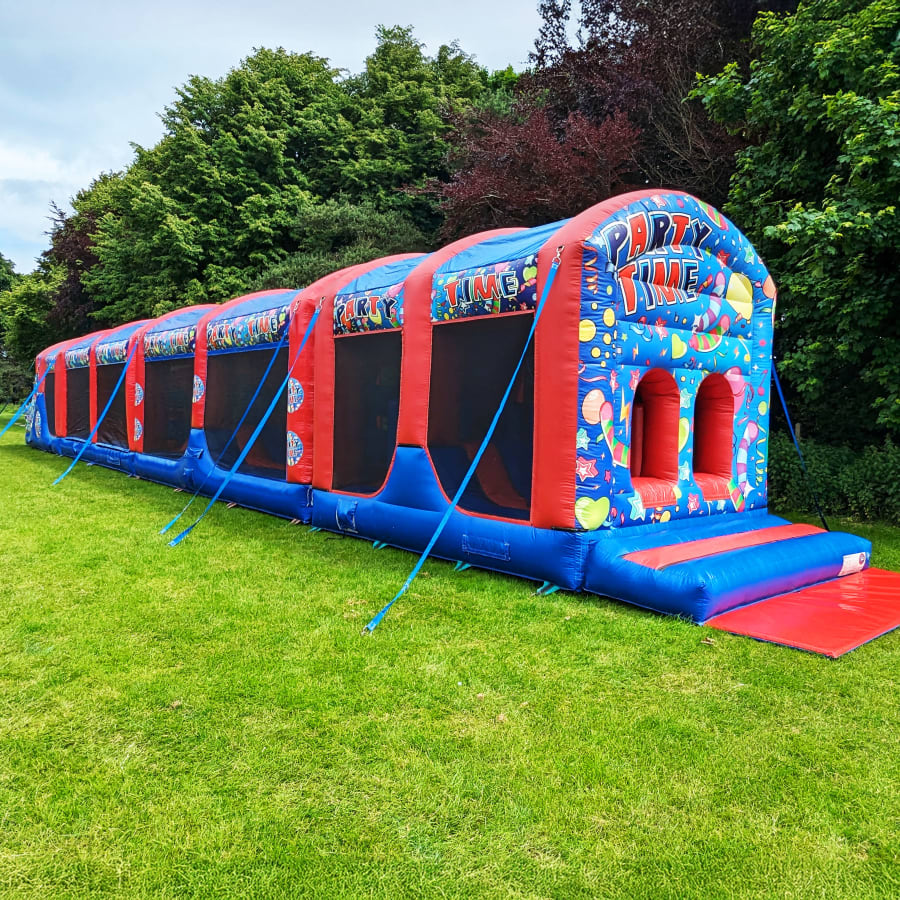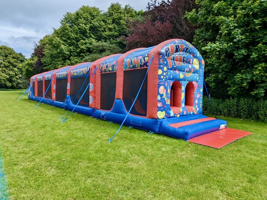 To book the 100ft assault course, just use the green button below. Our online booking system is always correct and will collect all the information we require, once you have paid the booking fee we will confirm your booking with a confirmation email. For any questions regarding this product or any other bouncy castles or services we offer please call us on 07870672283 anytime between 9 am - 6 pm, 7 days a week.
