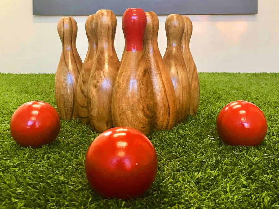 Bring the fun of our 10 piece skittles game to your home or event! The aim the game is to knock all the skittles down with as few attempts as possible. Skittles is a fantastic game for players of all ages and a great family game! It is perfect for other occasions that require interactive games!