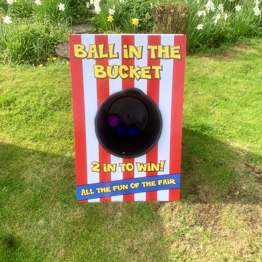 Ball in the bucket is just like the traditional fairground game but on a small scale, this aim game is fun for all and an ideal extra for birthday parties, BBQ’s and other types of events. Aim the ball at the bucket and release but don’t throw too hard as the ball may bounce back out! Get all 3 balls in the bucket to win!
