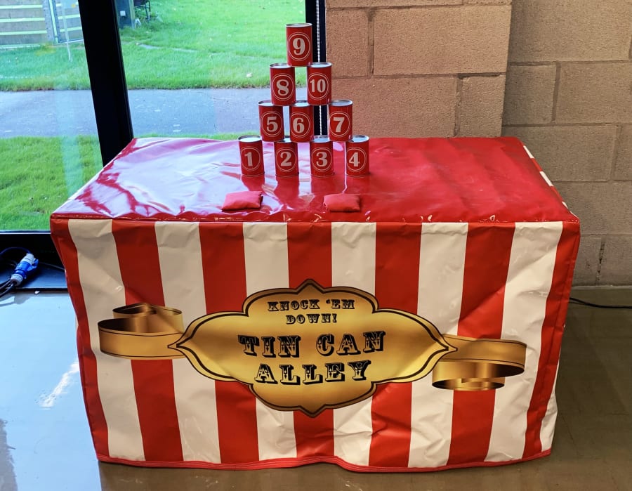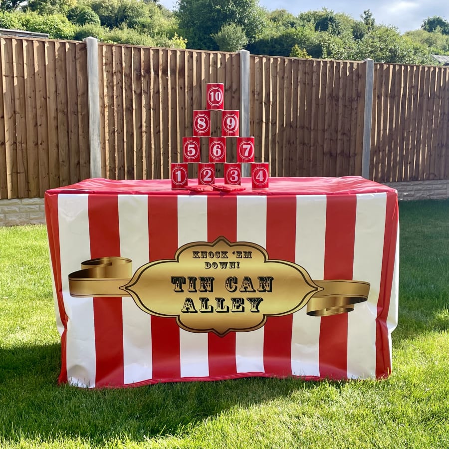 Tin Can Alley is a popular and traditional fairground game, just throw the bean bags at the tins and see how many you can knock down! There is one point awarded for each can knocked down. Play as individuals or as teams and get someone to keep score. Ideal as an extra for birthday parties, BBQ’s and summer events.