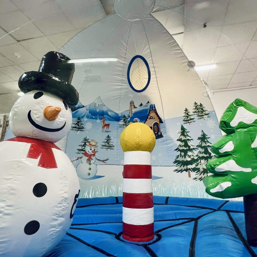 The Giant Inflatable Snow Globe Hire features easy-to-use squeeze doors, inviting guests to step into an enchanting scene. Inside, children can bounce and play among delightful seasonal Christmas inflatables, including a cheerful Snowman, a sparkling Christmas tree, and a whimsical Totem Pole. The immersive atmosphere is ideal for capturing magical photographs and creating lasting holiday memories.