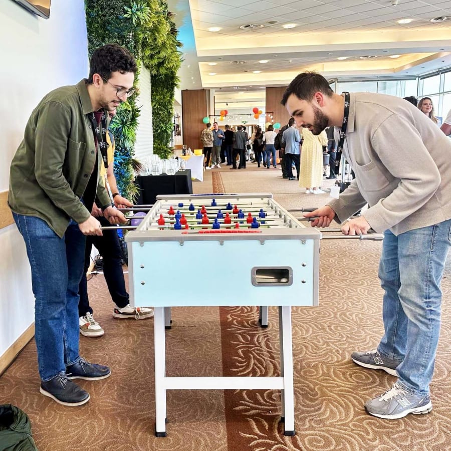 Booking is quick and easy — simply use the green button below to check availability and secure your football table hire. A 25% non-refundable booking fee (rounded up to the next £10) secures your spot. For any questions or to call us directly, contact our friendly team Monday – Sunday, 9 am – 5 pm.