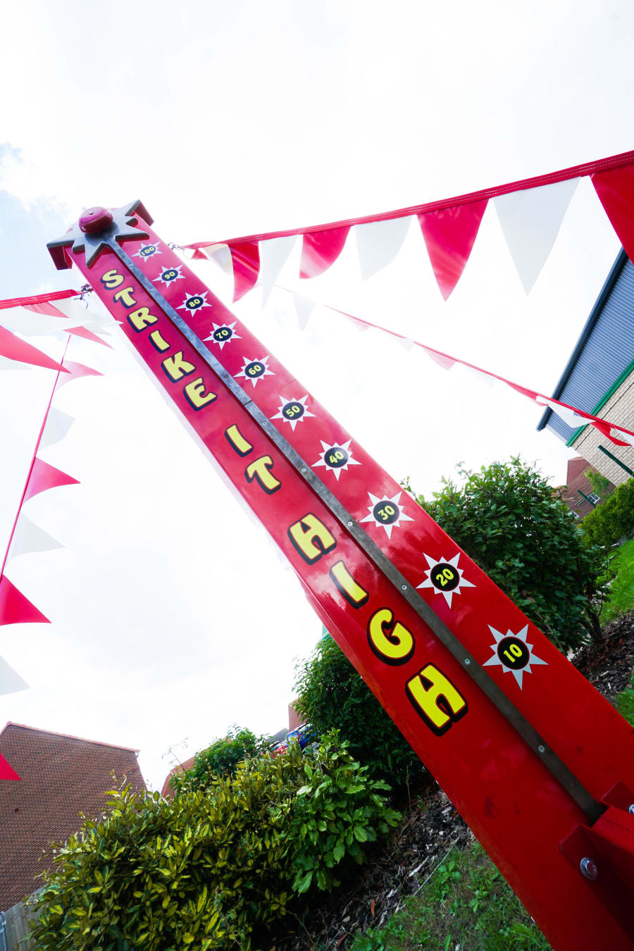The High Striker continues to be as straightforward as ever. Simply whack the base as hard as you can with the heavy hammer to watch how far the flyer soars. Whoever sends it all the way to the top will receive glory!