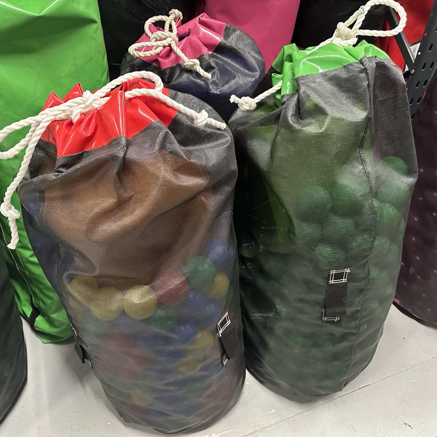 Our Mesh Ball Pool Ball Bags can hold up to 500 balls per bag. These are great for storing ball pool balls! Each bag is made to order. The bags last longer than the standard Ball Pool Balls Netted Bag Wash/Store as they are made out of PVC Mesh. Please specify on the order form what colour you'd like the base and rim of the bag. The PVC mesh can only be black due to the material used.