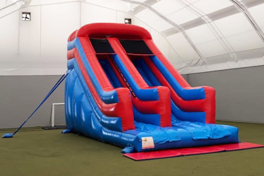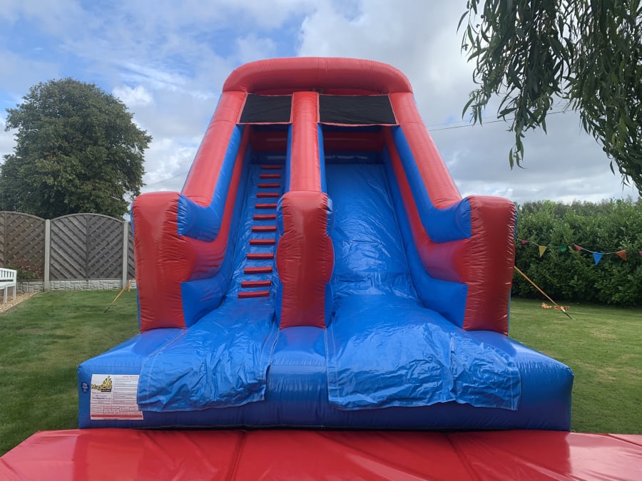 This top quality made inflatable slide is blue and red themed and very vibrant! It is fantastic fun for all ages, genders and event types! It has sewn in handles on the walls to assist with the climb to the top. Its high walls and netted top promote user safety! Safety mats are supplied as standard along the front edge of the inflatable. All bookings will be given a safety book to refer to and outdoor bookings will also receive a wind meter for you to monitor the wind speeds duration of your booking.