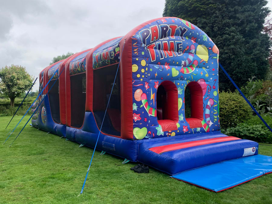 To book the 45ft obstacle course, just use the green button below. Our online booking system is always correct and will collect all the information we require, once you have paid the booking fee we will confirm your booking with a confirmation email. For any questions regarding this product or any other bouncy castles or services we offer please call us on 07870672283 anytime between 9 am - 6 pm, 7 days a week.