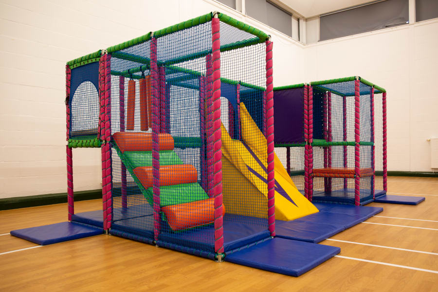 The sections include a step climb, net crawl, v bridge, upper snakes, net crawl, and slippery slope, this variation is suitable for 9 children up to the age of 7 all to play at once ideal for toddler groups and younger aged children’s birthdays!
