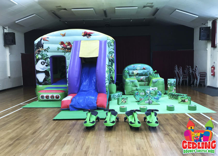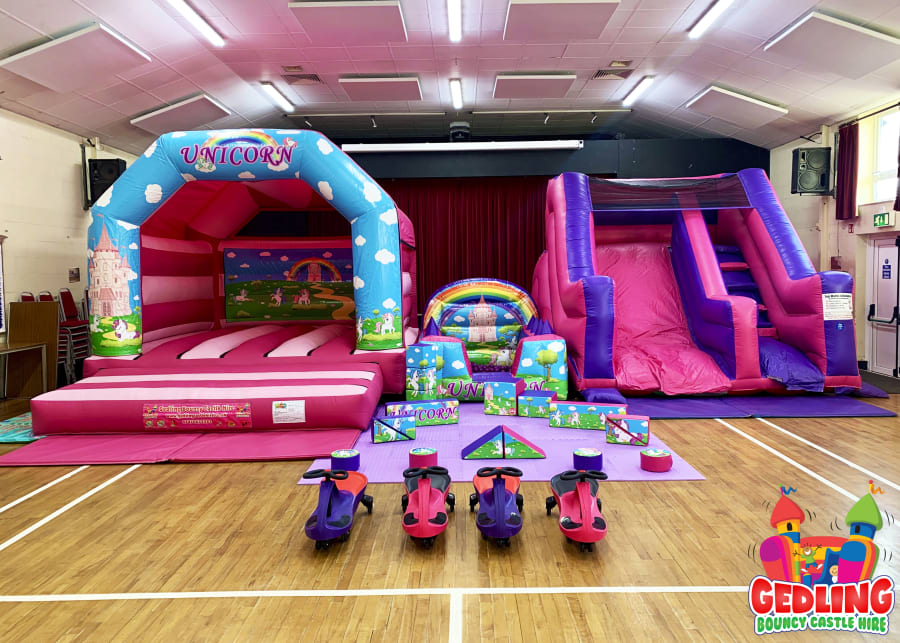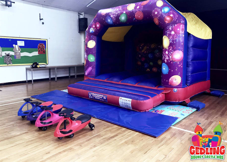 Any item over 14ft will need to be set up outside on the grass. I.e 10ft Platform Slide