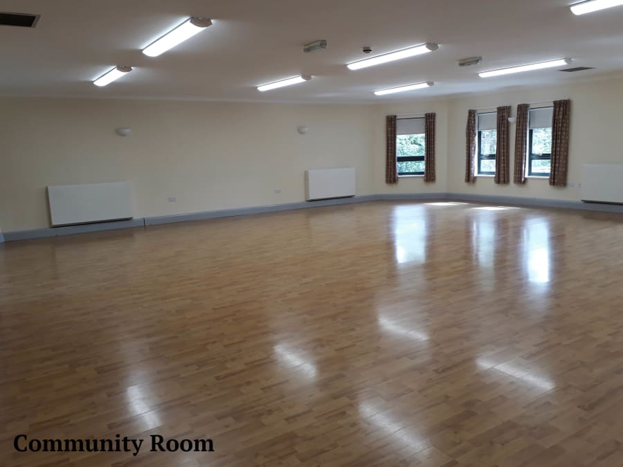 The Community Room is the middle-sized room, this room has wooden flooring but also has an adjacent kitchen with serving hatch. The standing capacity is 70 people or 50 seated. The community room is only suitable for smaller items or packages such as soft play and ball pools. Some options are below: