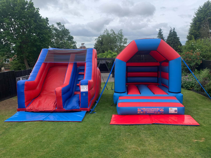 We supply this bouncy castle and bouncy slide package in Nottingham, Derby, and Leicester. This package is great value with a saving of up to £30! Grab this deal today and book online using the buttons below! Or if you have any questions about this call us on 07870672283.