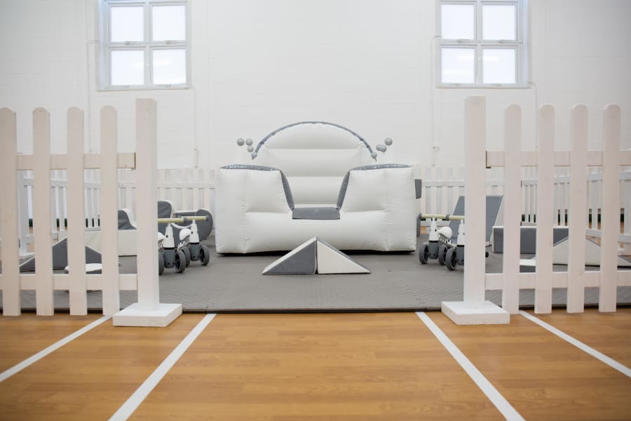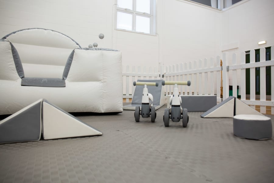 Introducing our Luxury White & Silver Soft Play package, perfect for young children to have hours of fun and excitement! This deluxe set includes 18 pieces of soft play, a foam rocker, a step & slide, large grey foam mats. Paired with our 4 white Didi Trikes and white picket fencing really extends the look of this package giving it complete luxury feel!