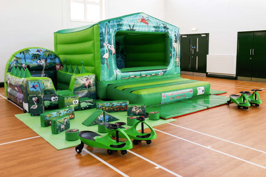 This package contains our Jungle Air Juggler Ball Pool, Jungle Basic Piece Soft Play Set on foams mats, Jungle Box Castle and 4 Didi Cars. It is ideal for your little monkey as they can drive deep into the jungle on the didi cars and find all of the soft play animals on the way, then bounce high into the treetops and swing into the soft play balls.