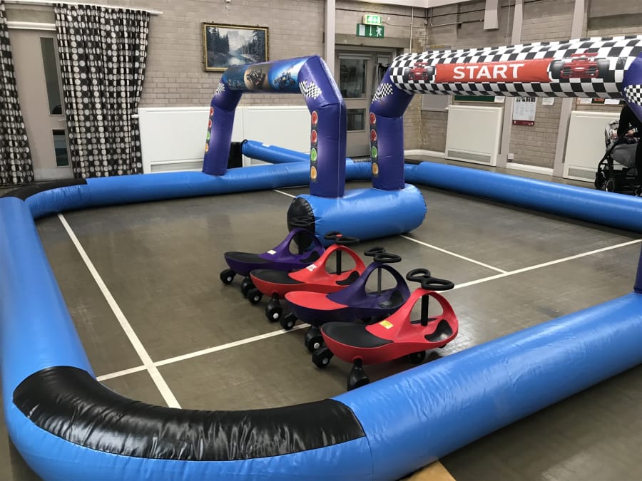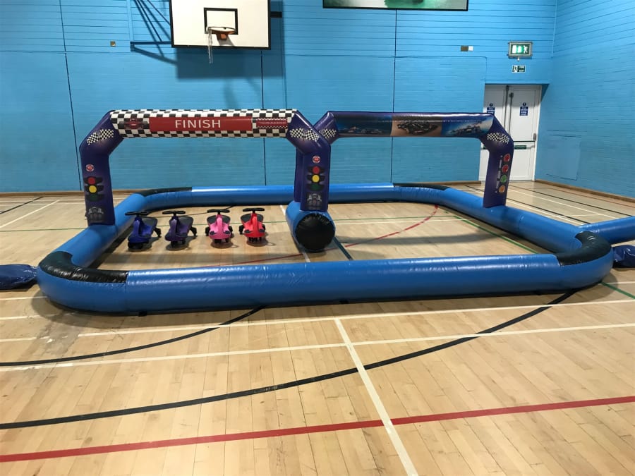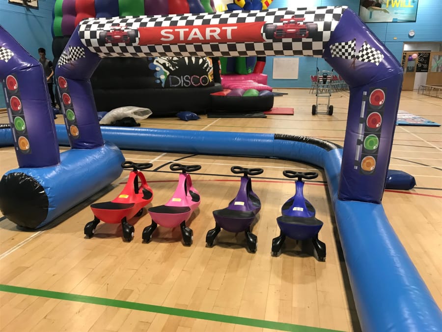 This package contains our race-themed Didi Car Track, Any Choice of Standard or Themed Bouncy Castle and 4 Didi Cars. This package is a great way to keep the kids entertained from them bouncing high on our super bouncy castles to racing around in the track on the cars, who can make the fastest lap and cross the finish line first?