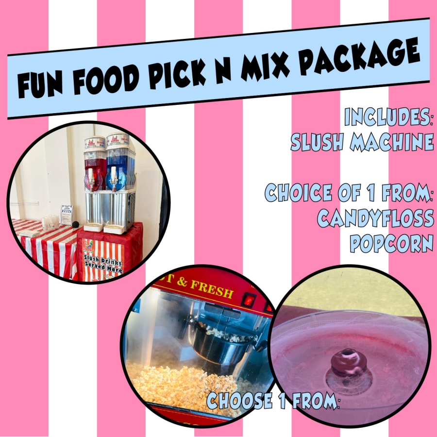 • Slush Machine: Serve up refreshing, ice-cold slushies in a variety of vibrant flavours! Perfect for kids and adults alike on any day. Included is 50 servings but this can be upgraded to 100 servings.